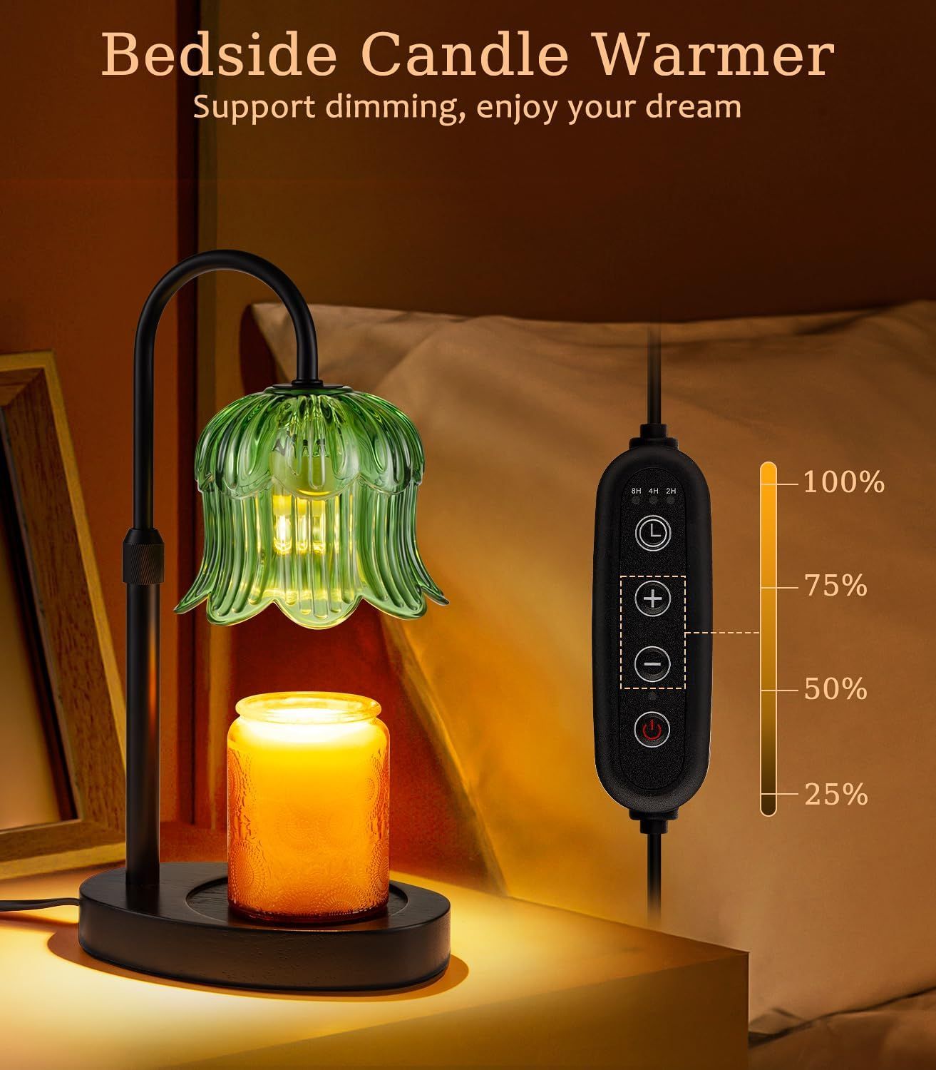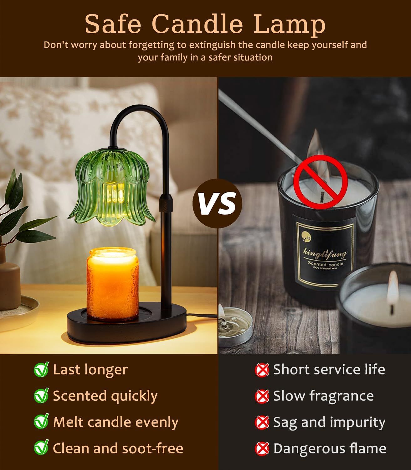 Candle Warmer Lamp with Timer, Flower Shape Candle Wax Warmer Lamp for Jar Tulip Candles Burner Dimmable Light No Flame Scented Warming Adjustable Height