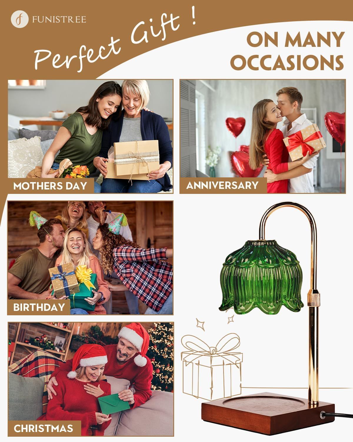 Green Candle Warmer Lamp with Timer & Dimmer, Candle Lamp Warmer Adjustable Height, Birthday Valentines Day Gifts for Women Mom