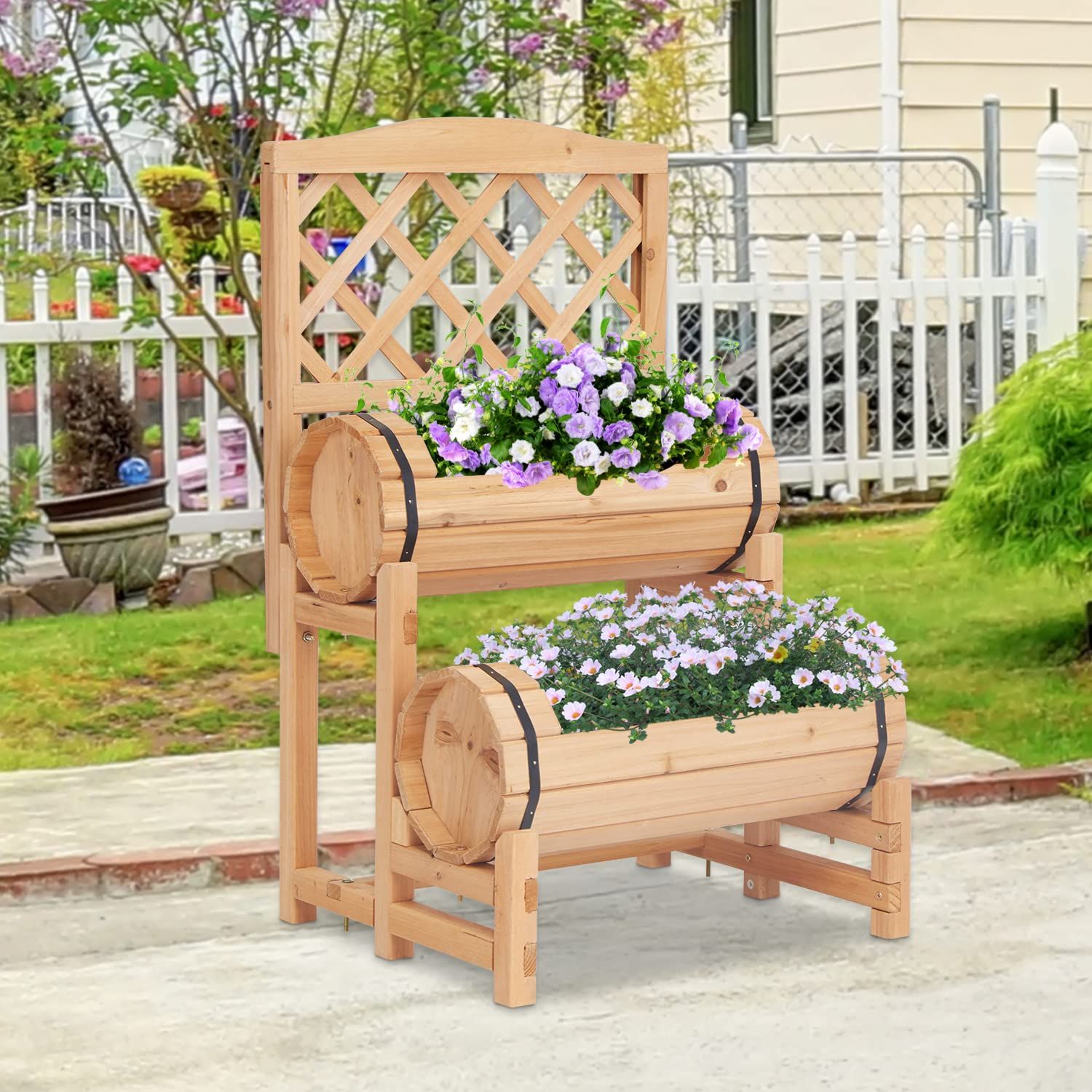 3.Sturdy and Durable: This outdoor planter is made of high-quality wood, which has strong stability and a stronger structure, which can be placed outdoors for a long time. The double-layer design is more space-saving.