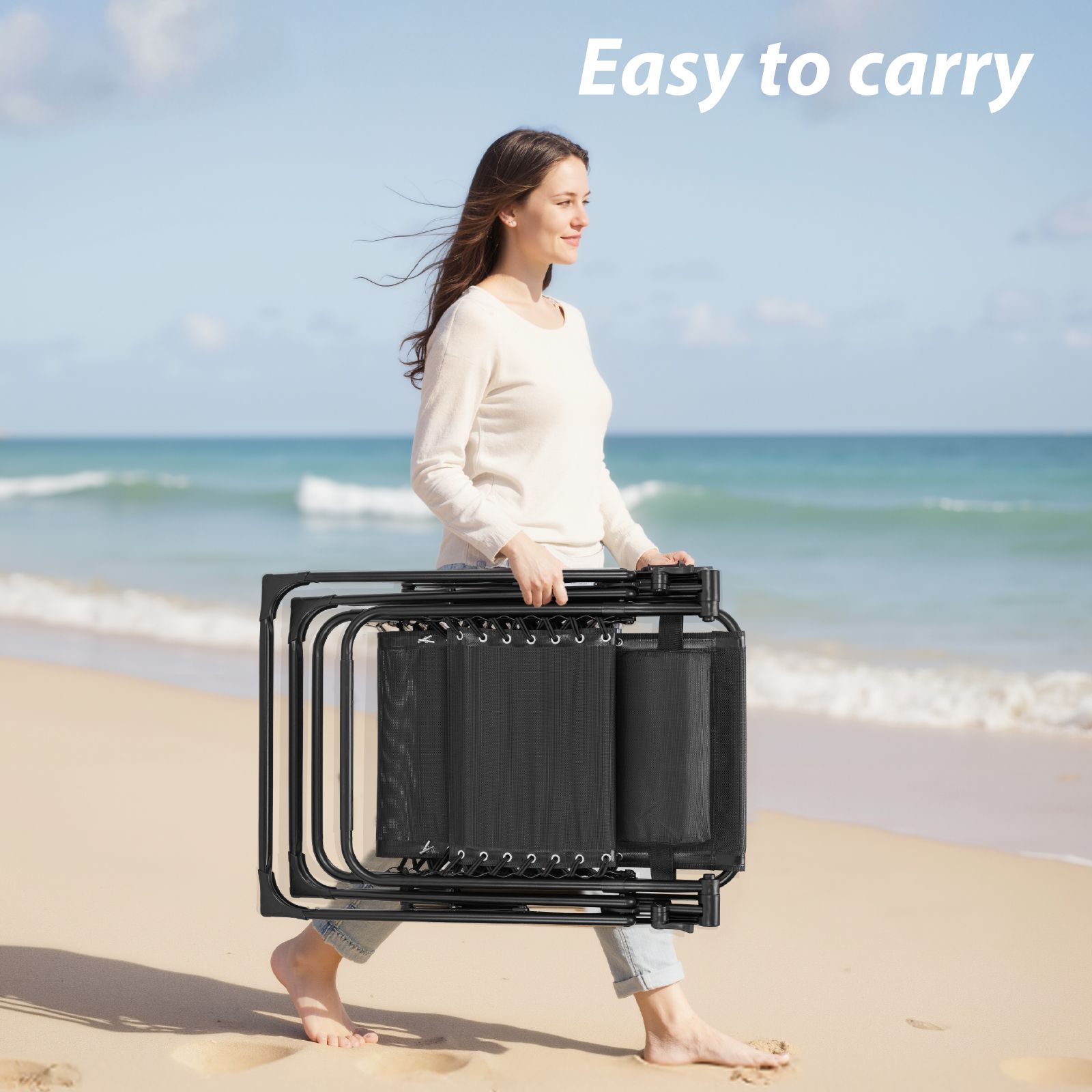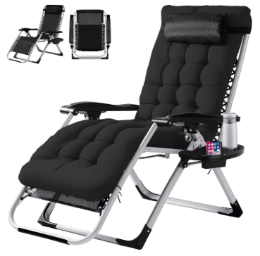 [Premium Material]The durable metal frame can hold up to 440lbs. This zero-gravity chair is the first choice for those who want to rest or take a nap on camping, beach, poolside or lawn.[Ergonomic Design]An ergonomically designed zero gravity recliner effectively alleviates pressure on the shoulders, back, and lower back. With a full reclining feature and adjustable headrest, it allows for maximum body relaxation. And allowing you to drift into a peaceful sleep.[Removable Cushion, Cup Holder Pillow]The zero gravity lounge chair with a Removable cushion provides enhanced softness and comfort. The cushion is detachable, ensuring good ventilation even in the summer, making it suitable for use in both winter and summer. The multifunctional cup holder provides storage for items such as phones, water bottles, keys, and more. The upgraded padded pillow provides you with a comfortable experience.[Lockable Function]lt can be adjusted to any angle between90 and 170 degrees. Work with replaceable elastic cords to glide smoothly to an ergonomic zero-gravity position that instantly adapts to your body. The outdoor chairs surely provides a super cosy rest place.[Portable and Multifunctional]This foldable zero gravity lawn chair requires no assembly and can be easily folded and unfolded in seconds. Its lightweight design makes it easy to carry, and suitable for various locations like yards, lawns, patios, decks, gardens, courtyards, balconies, pools, and beaches.